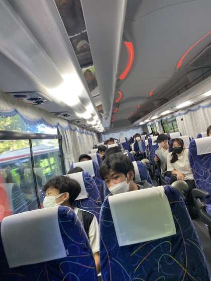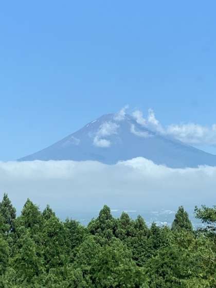 トレッキングをする紅葉台に移動している最中、富士山を見ました。