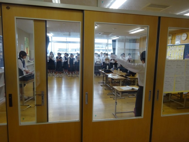 文化祭当日の朝の様子です。最後の声の調整・確認をしています。