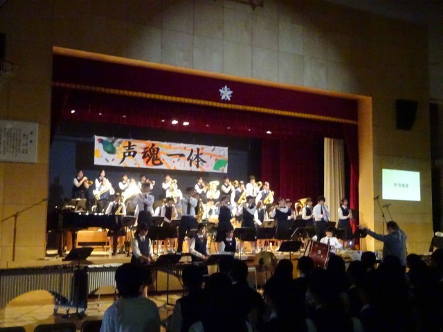 盛り上がる演奏があり、体育館が一体になりました。演奏を聴いて、リズムに乗って手をたたいて、心が豊かになりました。