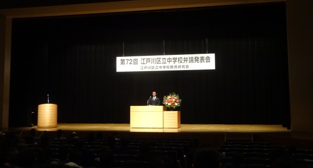 本日、総合文化センターにおいて、江戸川区立中学校弁論発表会が行われました。