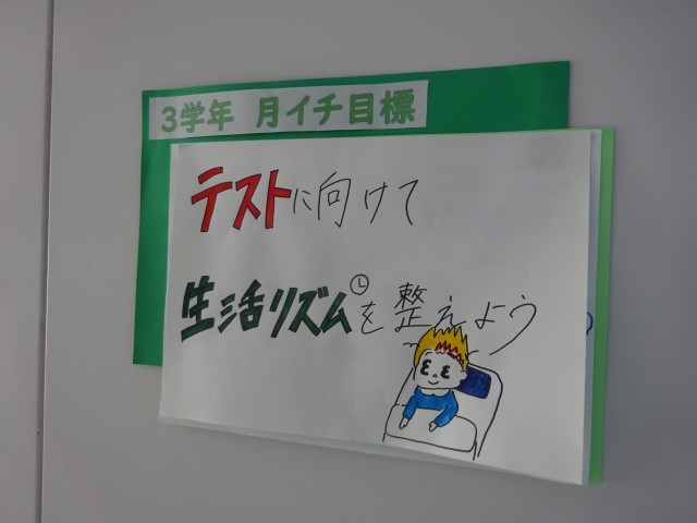 来週からは、いよいよ期末考査です。今週は部活動も停止期間、テストの準備をする期間でした。時間を有効に使えたでしょうか。今日、明日、明後日は、直前のまとまった時間、まだまだ時間はあります。最後まであきらめずに準備に取り組みましょう。