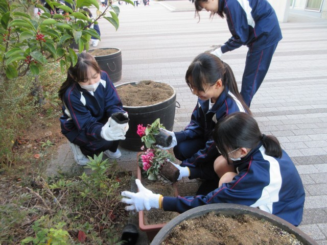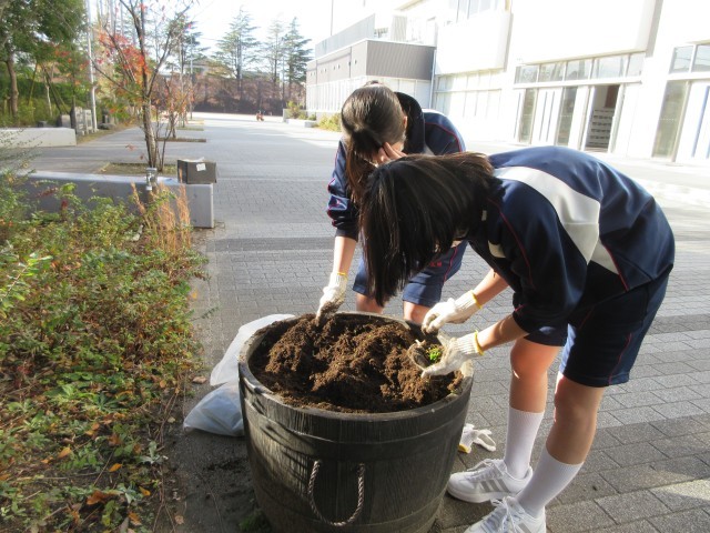 11月20日(木)テストが終わった放課後、ガーデン活動を通し、学校の美化に努めること目的とした『ウェルカムガーデン』の整備を、生徒会とボランティア有志で行いました。