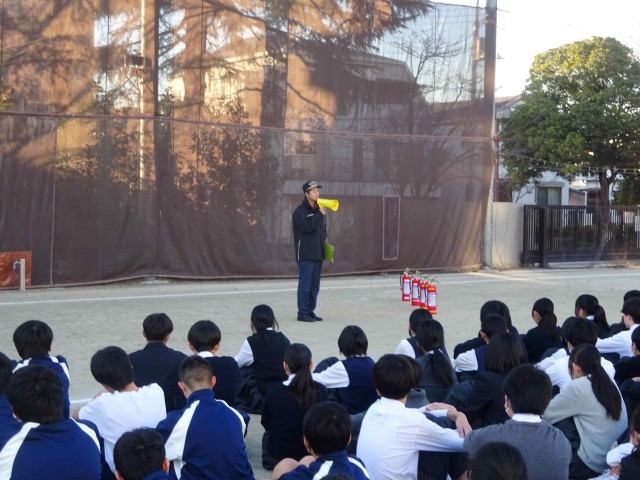 訓練では、授業中に第1理科室から出火したという想定のもと、放送の指示に従って速やかに校庭に避難することができました。