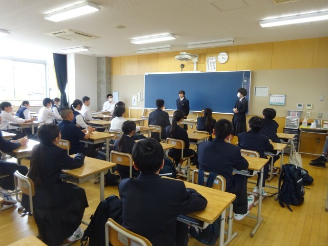 松江五中は、生徒会本部、学級委員会、生活委員会、整美委員会、保健委員会、図書委員会、放送委員会、給食委員会の8つの専門委員会があります。生徒会本部は7名ですが、その他の委員会は各クラス2名が役割を担っています。
