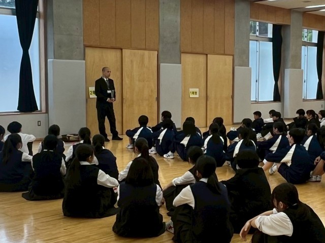 昨日、たちばな隊発足式を行いました。たちばな隊とは、学校だよりなどのお知らせを地域の学校関係者の方々のお宅に直接届ける生徒たちのことです。