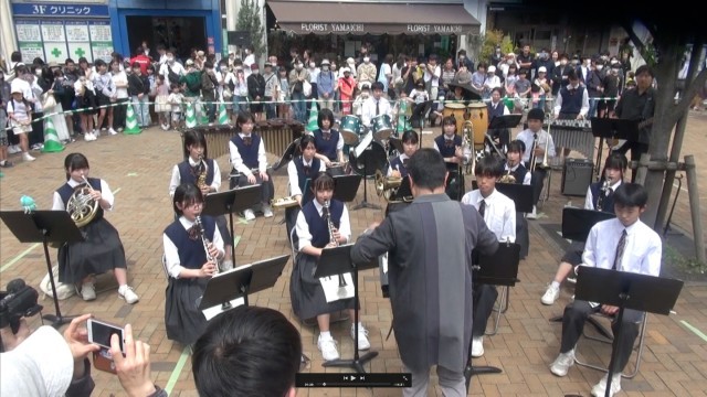 4月20日(土)一之江駅前西口春祭りが開催され、本校吹奏楽部が部活動として地域貢献をしました。