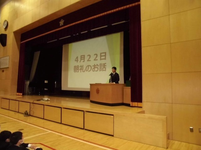 4/22(月)本日は今年度最初の全校朝礼がありました。