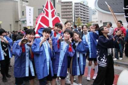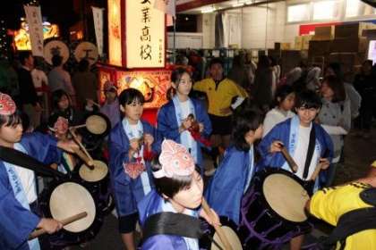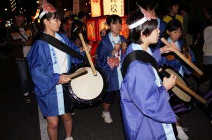 夕方、イルミネーションが点灯されました。それに合わせて、葛西工業を中心とした青森ねぶた祭りのねぶたの巡幸が行われました。威勢のいい太鼓や本場の跳人にまじって、本校生徒もおはやしや太鼓で参加しました。夏休みのお囃子体験教室に参加した生徒の有志達です。この日のために何回か練習会に参加して技を磨き、本番の巡幸に参加しました。なかなか上手でしたし、一生懸命な姿が良かったです。お疲れ様でした。