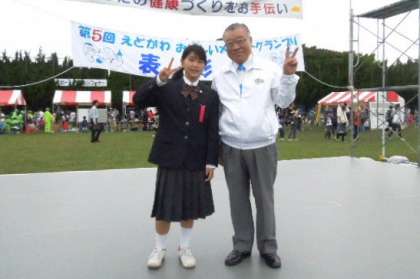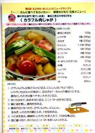 あとの写真は、表彰式の時に撮影した区長さんとのツーショットと、『カラフル肉じゃが』のレシピカードです。