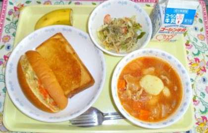 ごまに含まれるセサミンには、強い抗酸化作用があります。ごまの栄養パワーはとても優れているので、給食でも毎日のように使います。今日のトーストでは、練りごまを使用しました。練りごまは、つぶしてある分栄養素の吸収率もUPします。スープには、じゃが芋のニョッキを加え、ボリューム満点です。