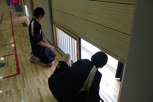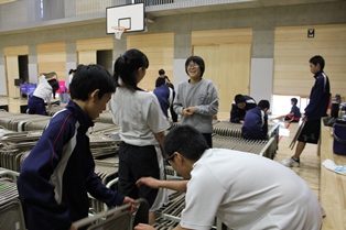 バスケットボール部年末恒例の体育館の大掃除の様子です。普段から清掃活動は行っていますが、細かいところまで清掃しました。また、パイプ椅子の整理の方法や、パイプ椅子の種類の見分け方も大掃除で後輩に引き継がれています。
