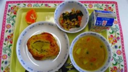 今日の給食 1月15日 公開日 2016/01/15 更新日 2016/01/15 お知らせ 【手作り】さつま芋のロールパン きのこサラダ カレーシチュー ぽんかん・牛乳 さつま芋のロールパンは、リクエスト給食パン部門で第3位に入りました。ほんのり甘いさつま芋がたっぷり入ったパンです。さつま芋は、芋の中でも食物繊維が多く含まれますので、給食でもよく使う食材です。 いいね(0)
