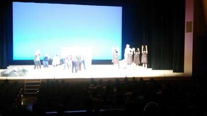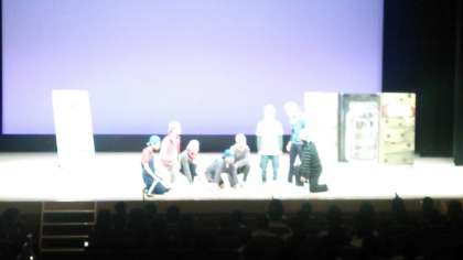松五の劇です。写真はあまりよく撮れてませんが、歌あり、アクションあり、ダンスあり、衣装も素晴らしく、そして何より、役になりきった演技。練習もしましたけど、日頃からの、学習の積み重ねの成果が表れた、松五らしい素晴らしい発表でした。