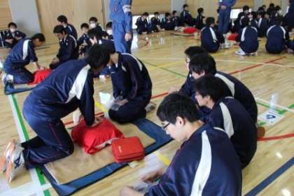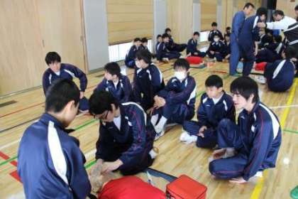 先日、3年生が体育館で救急救命のための講習会を行いました。心臓マッサージや人工呼吸など模型を使って実際に行い、いざという時に動けるように訓練しました。社会にでたときに頼れる人になってほしいと思います。また、本日は卒業遠足に行っております。たくさん思い出を作ってほしいです。