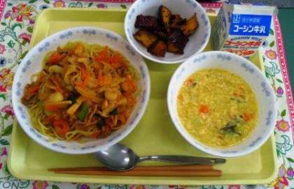 本来のエビチリは、にんにく・生姜・長ネギを炒めてエビと合わせますが、給食では野菜をたくさんとって欲しいので、たけのこ・キャベツ・青梗菜を加えて具沢山にしました。