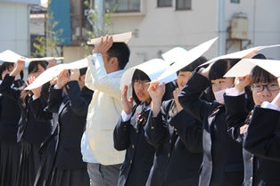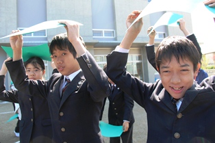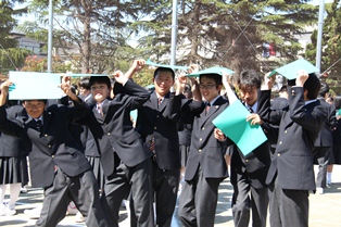 下からはどのような風に見えるのかは分かりませんが、全員で校章を描きました。