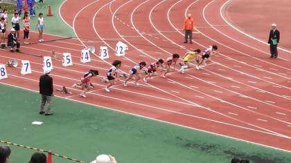 29日の江戸川陸上競技場は、2メートルから4メートルの強い向かい風が吹いていました。松五の選手も記録こそ出ませんでしたが、一生懸命走りました。
