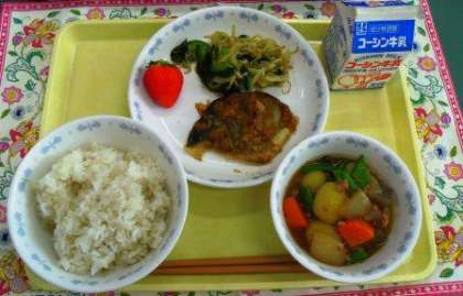 一口サイズの新じゃがを使うのは、今年度に入って2回目です。前回は、豚小間や竹の子と炒め煮にしたので、今回はひき肉を使ってそぼろ煮にしました。新じゃがは、みずみずしく、しっとりしているので、おなかにたまります。その時期に美味しい旬のものを食べると、栄養もしっかりとれます。