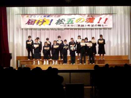 5組のハンドベルは、上を向いて歩こう他。歴史部は、江戸歴史散歩の発表。1年生有志による宮澤賢治の群読。みな中身の濃い、素晴らしい演奏と発表でした。
