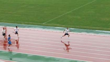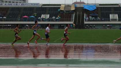 雨の中、江戸川区の陸上競技大会が行われています。松五の選手は、ベストを尽くしています。写真はランダムにアップします。