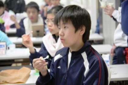 6組の生徒は、大切な歯を守るために、給食後にも歯磨きをしています。