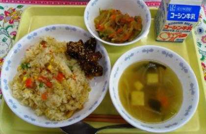 今日の給食 11月16日(水) 公開日 2016/11/16 更新日 2016/11/16 お知らせ チャーハン 豚レバーごまがらめ マーボー春雨 中華スープ 牛乳 給食では、時々レバーを出します。今日は、ごまが入った甘辛のタレを、揚げたレバーにからめた料理です。しっかり下味をつけるので、クセがなく味が染み、とても食べやすいです。レバーは生徒達にも人気です。 いいね(0)