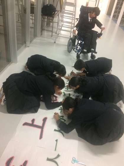役員が作成して昇降口の生徒会掲示板に掲げました。