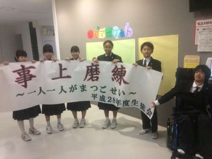 新生徒会役員が掲げたスローガンは“事上磨練”(実際の行動や実践を通して知識や精神を磨くこと)