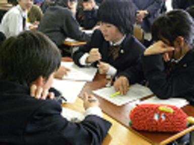 秋葉先生が、合唱コンクールを題材にして、友情・信頼をテーマに、1年2組で研究授業を行いました。コの字、4人組を活用して、生徒一人ひとりが考え、発表し、学びのある授業でした。