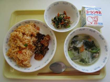 キムチに入っている唐辛子は食欲増進につながります。また少し辛味が入ると旨みが不思議と増してきます。成長期の中学生は体や骨を丈夫にするために栄養がとても大切です。しっかり残さず食べて6月も元気に過ごしてもらいたいと思います。