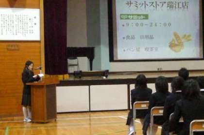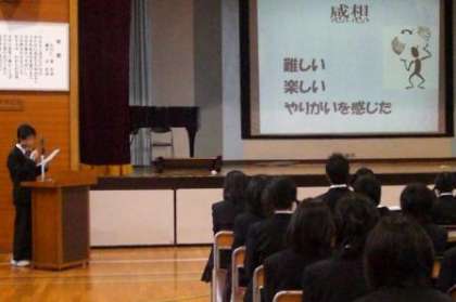 昨年の職業調べ発表会に比べて内容、パワーポイントの使い方、発表の仕方が、数段進歩していました。素晴らしかったです。また、ほとんどの生徒が、関心をもって聞いていました。聞く態度にも成長の跡が見えました。