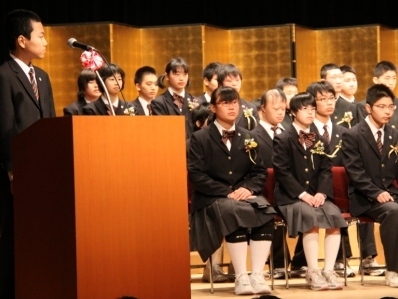 第一部のセレモニーは、3年生一人ひとりが、3年間の思い出を発表し、力強い決意表明をしました。1.2年生の心を込めた贈る言葉も素晴らしかったです。