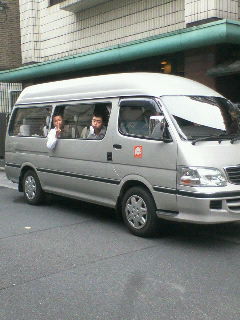 五組のみんなが、出発しました。天気は、薄曇り。いい一日になりますように!。