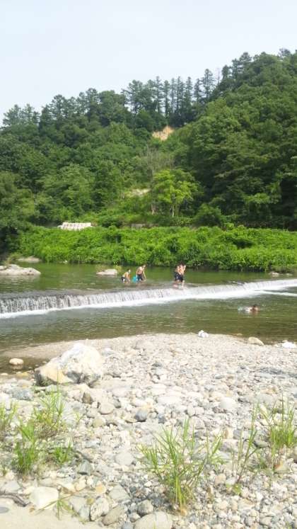 1組2班、新谷川にて、川遊び イワナと共に泳いでいました。