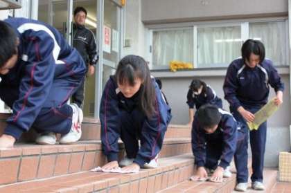 12月15日(土)は、予報と違って気温6度という寒〜い日でした。およそ60名の生徒は、寒さにめげず、今年で最後となる校舎をぞうきんで磨いてくれました。私は、15分程度しか参加できませんでしたが、生徒と先生方は2時間にわたって一生懸命掃除に汗(本当です、汗をかくくらい頑張っていました)を流しました。