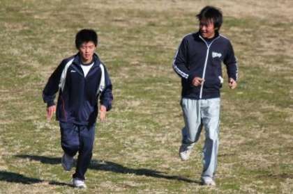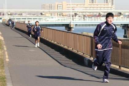 5組は、希望者を募って区の駅伝大会に参加します。今日も、先生と生徒が一緒に中川の土手を走って、走る力を鍛えています。