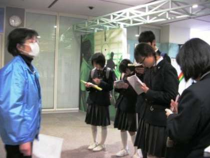 12月22日(土曜日)。港区高輪にある、日本ユニセフ協会・ユニセフハウスを、市川先生と生徒会役員が訪問しました。生徒の皆さんには、生徒会だよりでお知らせしましたが、生徒会役員は、エコキャップ活動のほかに、中学生の自分たちにできる、社会に目を向けた活動を行いたいと考え、準備しているようです。素晴らしい発案であり、有意義な取組になると思います。