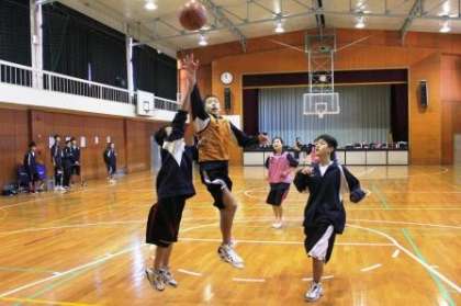 ニューイヤーカップは、江東区内の中学校を中心に、近隣区の学校も参加して行われる新年最初の大会。3日から練習を始めたバスケ部は、きょうは、ゲーム形式の練習が中心です。この時はちょうど男女混合で、オールコートでの3対3のゲーム練習をしていました。5日・6日の大会では、春につながる収穫が得られることを期待しています。