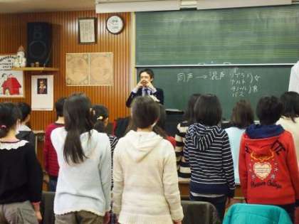 授業の様子を紹介します。児童の皆さんは、積極的に授業を受けていました。6年生の皆さんが、日ごろから、しっかり授業を受けていることがよくわかりました。中学校でも、しっかり学んで、夢と実現する学力をつけてほしいと思います。写真は、音楽と国語の授業です。