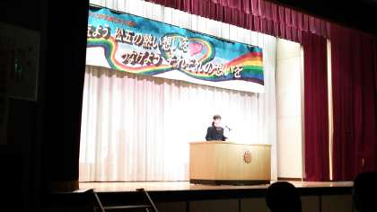 写真は、弁論です。今年は、全学年で、全生徒が予選会に参加しました。その中から生徒の投票で選ばれた各学年の代表が、文化祭の本番で、発表しました。学年の代表だけあって、皆すばらしい内容でした。