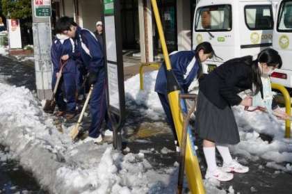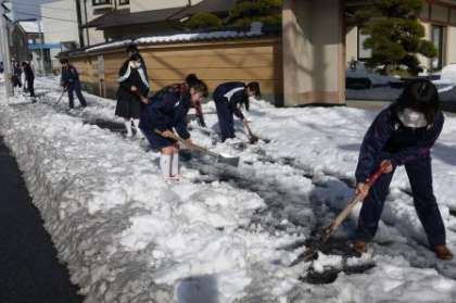 2月15日(土)は午後になって雪と雨がやみました。吹奏楽部の生徒たちは、今度は、、歩道を歩く人のために、感応寺さんの前からあぶら屋さんの前あたりまでの歩道を100m近く雪かきしてくれました。本当にご苦労様。