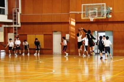 2年生と1年生が、往復でスリーメンと3対2の練習を続けています。互いに声を掛け合い、スピードとパス、シュートの正確さが身に着いてきているようです。リバウンドもしっかり飛んでいます。今日は卒業生も練習に参加してくれました。いい練習ができています。頑張れバスケ部。