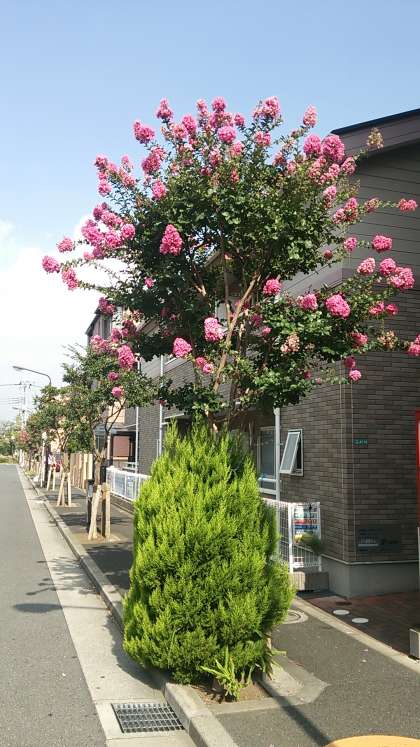 一之江駅から、本屋さんとめがね屋さんの間を通ってフレンド公園に向かう歩道に、百日紅の木が十数本植えてあります。百日紅と書いて「さるすべり」と読むのは、開花期間が長く、夏から秋にかけて長い期間花を咲かせるからだそうです。樹皮のはがれた部分はつるつるしているところから、「猿も滑って落ちる→猿滑り」というのが、名前の由来とされています。「猿滑」と書くこともあります。夏の熱い時期に赤や白の鮮やかな花を咲かせるので、私は、朝、一之江駅から本校に向かう途中、百日紅の花に元気をもらっています。今年も鮮やかな赤い花が咲きました。