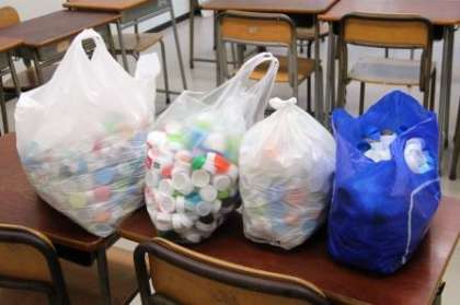 本校の生徒会は、エコキャップ回収を通して、社会貢献をしています。