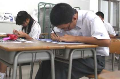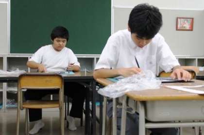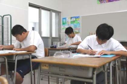きょうの5組は、午後1時から4時までの予定で、美術の補習を実施しています。みんな真剣な表情で作品に向かっています。先生に質問している生徒もいます。できた作品は作品展で展示します。