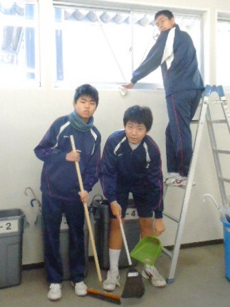 13日(土)の美化ボランティアには93名の参加があり、仮設校舎や体育館を綺麗に磨きました。企画・運営はすべて生徒会役員で、先生はほとんど手や口を出していません。写真をたくさん掲載していきます。