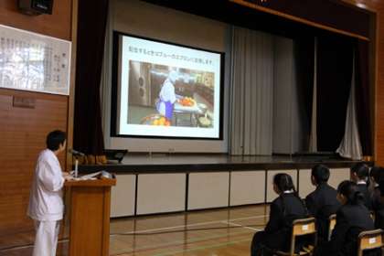 お礼のあいさつをした保健副委員長は「調理の行程によりエプロンを変えていたりすることを知り、毎日食べている給食をもっと大切にしようと考えたことや私達も片付けのときにスプーンとフォークが混ざらないようにすることにも気を付けていかならければならないと思った」ということを話していました。