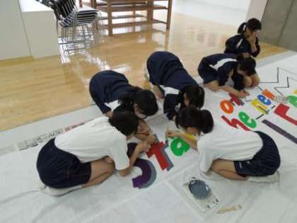 来週に控えた運動会本番のスローガンを美術部が作成しております。