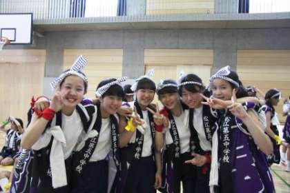 松江五中のソーランの半被は、村井さんを通じて専門の業者さんに作っていただいています。また、今年も豆絞り(手ぬぐい)を170本もいただきました。いつも応援していただき、本当にありがとうございます。