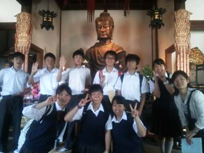 飛鳥大仏と生徒の写真をアップします。遅くなりました。今の時間は、入浴と自由時間です。